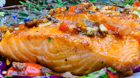 Roasted Salmon With Pomegranate Glazed between $ 12.00 to $ 14.00 -